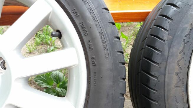 Sprzedam Alufelgi-opony letnie 15 cali.Rozstaw śrub 5x112 Rozmiar opon 195/50 R15,Opony z 2017 roku,stan ogumienia ...