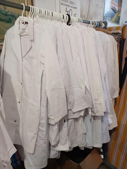 Białe fartuchy , długi rękaw , damskie i męskie . Różne rozmiary . Odzież używana . Stan bardzo .dobry. Cena 40 ...